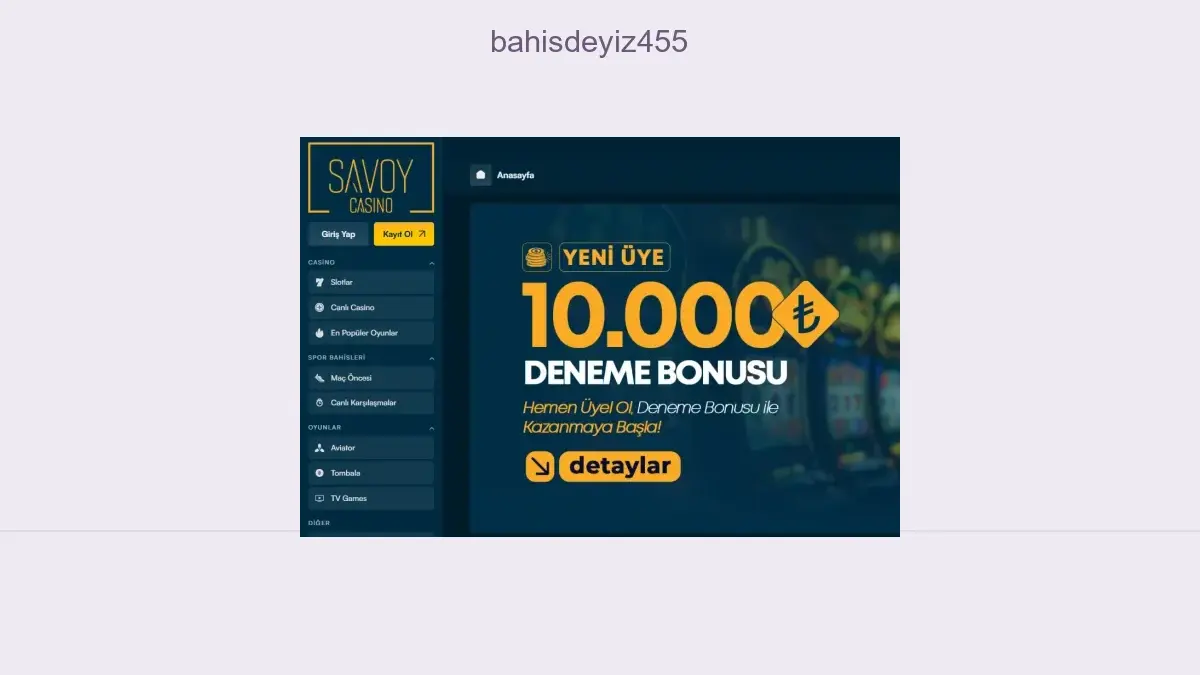 Bahisdeyiz455 bahiste üyeliğiniz varsa sayfamızda bulunan Bahisdeyiz455 güncel giriş adresinden sitenin faal domainine erişim sağlayabilirsiniz.