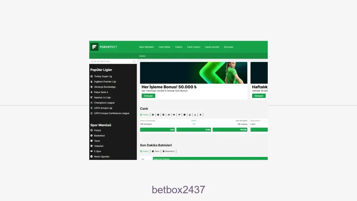 Kullanımdaki linki yenilenen Betbox2437 bahis için aşağıdaki Betbox2437 giriş bağlantısını tıklayabilirsiniz. Link açılmıyorsa Betbox2437 yine erişime kapatılmış olabilir. Kaçak bahis sitelerinin engellenen adresleri küçük değişikliklerle hizmete sunulduğundan bundan sonra Betbox2437 giriş adresinden hizmetini sürdüren siteye aşağıdaki buton vasıtasıyla erişim sağlayabilirsiniz. Betbox2437 linki çalışmıyorsa şirketin güncel adresi bir kez daha güncellenmiş olabileceği için biraz bekledikten sonra yeniden deneyin.