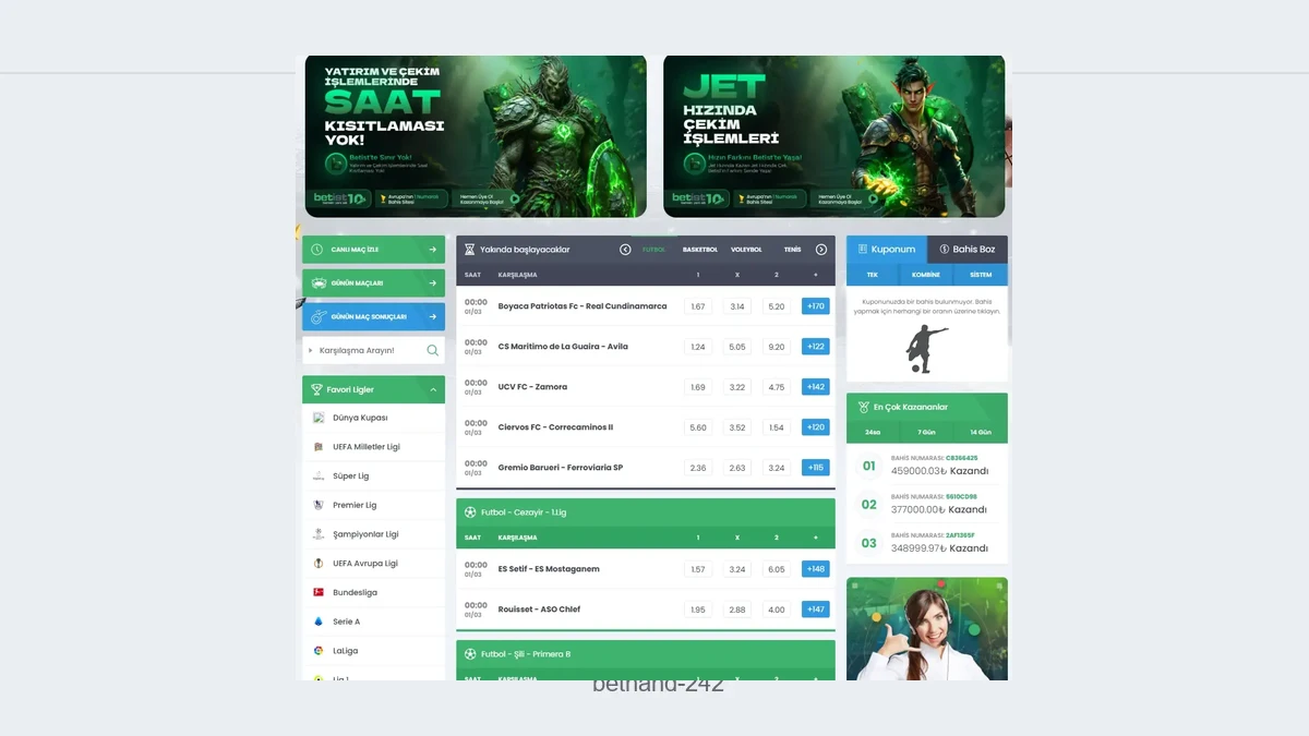 Bethand 242 bahis; Türkiye'de yasalara uygun yayın yapmayan bir web sitesi olmasından dolayı Bethand 242 giriş adresi sık sık kapanmaktadır. Kullandığınız platformun giriş adresi sürekli değişmekteyse bu durumun sebebi adresinin yasadışı olduğu sebebiyle erişime kapatılmasıdır. Üyesi olduğunuz siteyi kullanmaya devam edecekseniz erişim engeli problemine alışmalısınız.