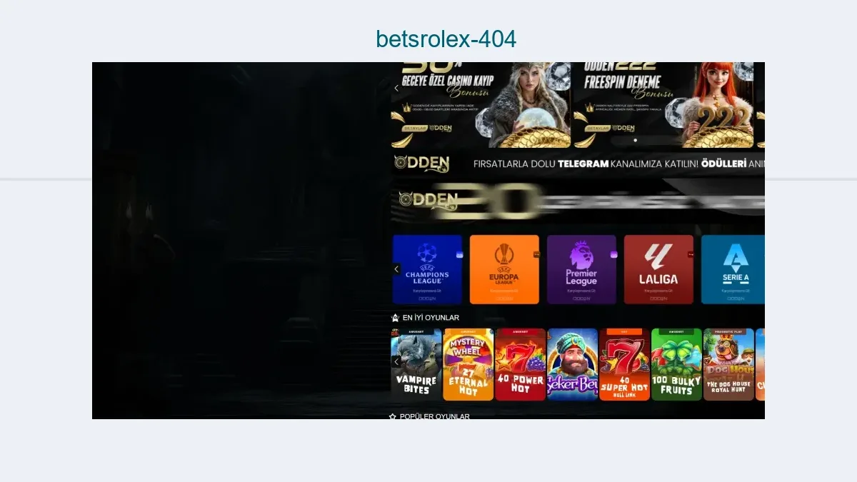 Son giriş adresi yenilenen Betsrolex 404 firmasına ulaşmak amacıyla alttaki Betsrolex 404 giriş linkini kullanınız. Link çalışmıyorsa Betsrolex 404 yeniden erişime kapatılmış olabilir. Yurtdışı bahis firmalarının kapatılan giriş adresleri değiştirilerek hizmete sunulduğundan artık Betsrolex 404 giriş adresinden hizmet veren şirkete aşağıdaki giriş linkinden giriş yapabilirsiniz. Betsrolex 404 linki aktif değilse firmanın giriş adresi yeniden engellenmiş olabileceğinden bir süre bekledikten sonra tekrar deneyin.