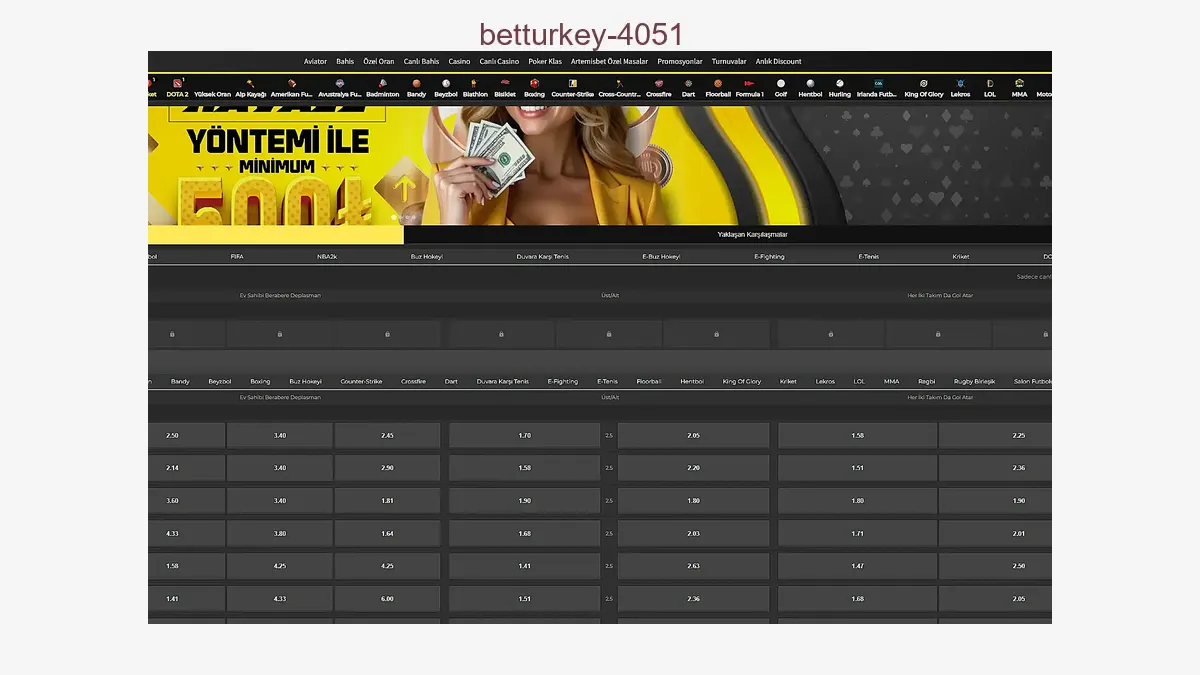 Giriş adresi güncellenen Betturkey 4051 sitesine girmek için Betturkey 4051 giriş linkini tıklayabilirsiniz. Betturkey 4051 giriş bağlantısı çalışmıyorsa Betturkey 4051 bir kez daha erişime kapatılmış olabileceği için biraz bekleyiniz. Yurtdışı bahis sitelerinin kapanan adresleri güncellenerek hizmete sunulduğundan artık Betturkey 4051 giriş adresinden hizmetini sürdüren siteye alttaki giriş bağlantısından ulaşabilirsiniz. Betturkey 4051 giriş linki aktif değilse sitenin adresi tekrar yenilenmiş olabileceğinden bir süre bekledikten sonra tekrar deneyin.