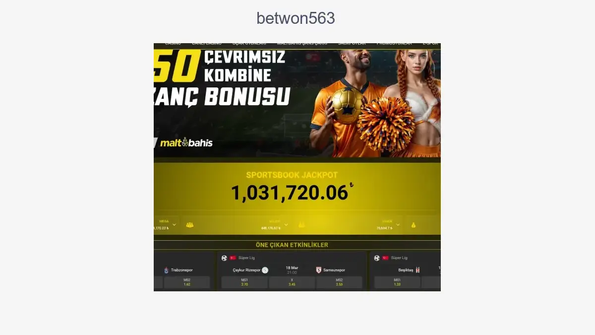 Kullanımdaki linki değiştirilen Betwon563 bahise giriş yapmak istiyorsanız aşağıdaki Betwon563 giriş linkini tıklayınız. Betwon563 linki çalışmıyorsa Betwon563 yeniden erişime kapatılmış manasına gelir. Yabancı bahis sitelerinin kapatılan linkleri değişikliğe uğrayarak açıldığından artık Betwon563 giriş adresinden hizmetine devam eden şirkete sitedeki giriş bağlantısından erişim sağlayabilirsiniz. Betwon563 linki çalışmıyorsa şirketin domaini tekrar güncellenmiş olabileceği için bir süre bekledikten sonra yeniden deneyin.