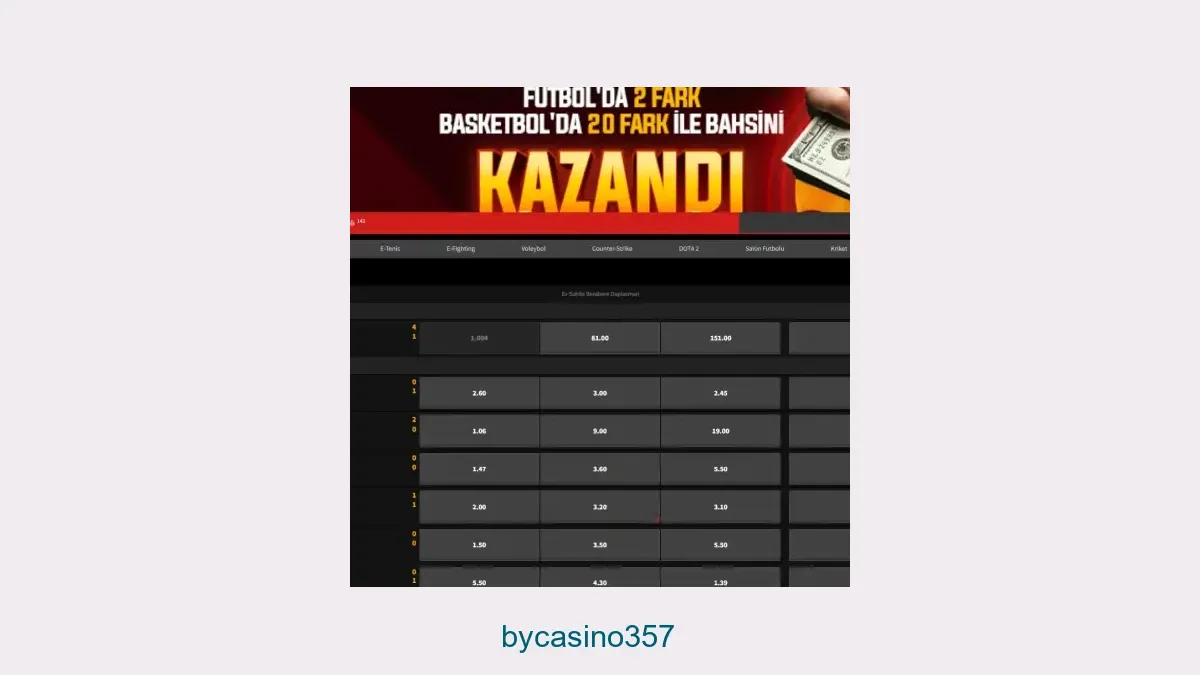 Bycasino357 bahis; Türkiye'de yasalara uygun yayın yapmayan bir web sitesi olduğu için Bycasino357 giriş adresi sürekli kapanmaktadır. Bycasino357 giriş adresi, kapatılması sonrası yenilenerek üyelerinin sorunsuz giriş yapması için başka bir adresten faaliyet göstermeye devam etmektedir. Kapatılma problemi bazen çok kısa sürelerde gerçekleşebilirken bazen de daha uzun sürelerde gerçekleşmektedir.