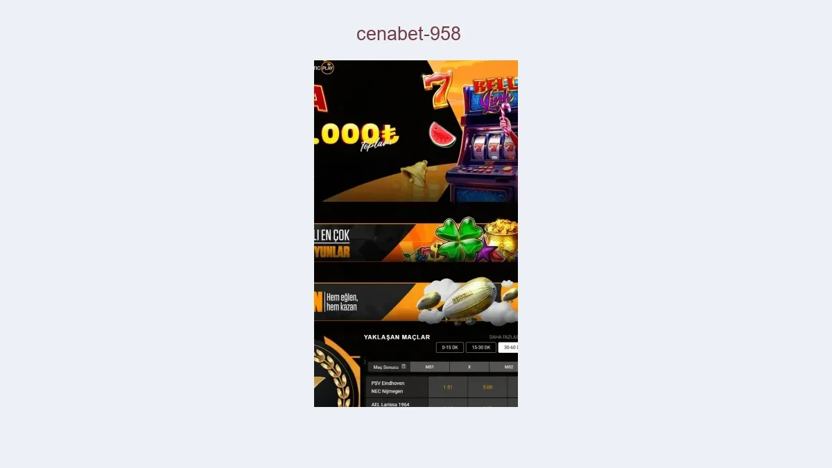Cenabet 958 firmasının güncel giriş adresi sayfamızda bulunmaktadır. Cenabet 958 bahis platformunun en güncel linkine daima ulaşmak isterseniz web sitemizi sık kullanılan siteler bölümüne eklemeyi unutmayınız.