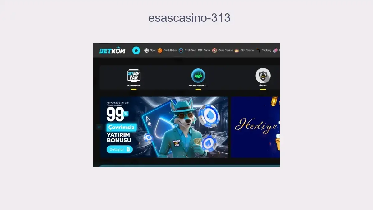Esascasino 313 bahis yeni giriş adresi web sitemizde mevcuttur. Firmanın en güncel linkine daima ulaşmak amacıyla sitemizi kullandığınız browserın favoriler bölümüne eklemenizi tavsiye ederiz.