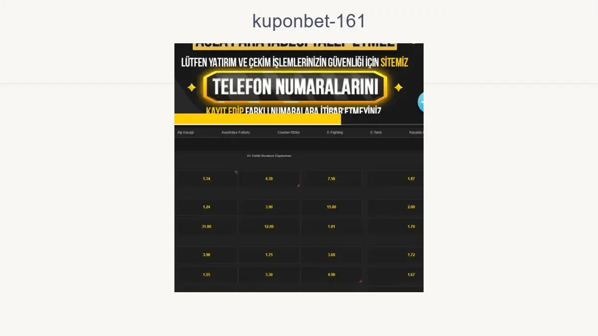 Kuponbet 161 bahis sitesinde hesabınız varsa web sitemizdeki Kuponbet 161 güncel giriş adresi üstünden firmanın güncel domainine erişim sağlayıp bahis yapabilirsiniz. Kuponbet 161 giriş adresi yenileme dönemlerinde siteye giriş yaptığınızda kullandığınız domainin aktif adres olup olmadığını site üstünden doğrulayınız.