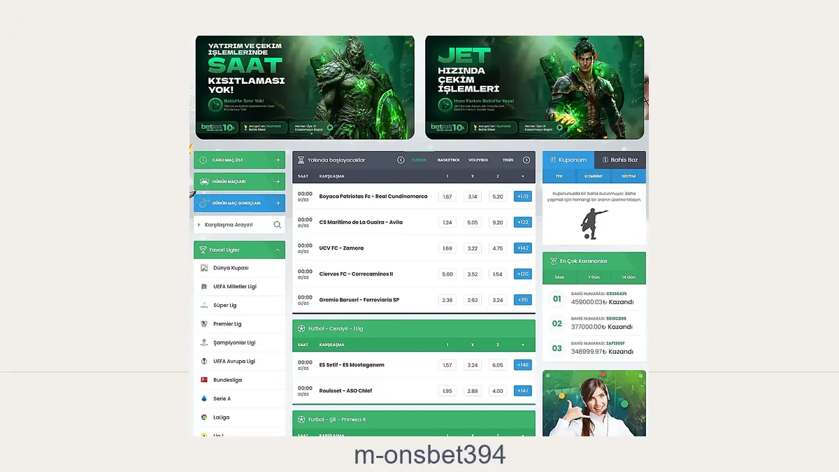 M.Onsbet394 gibi bir bahis sitesi üyesiyseniz bir süre sonra M.Onsbet394 giriş adresine erişim sağlamakta zorluk yaşamanız muhtemeldir zira bütün yabancı bahis şirketlerinin adresleri kapanma sorunuyla karşılaşmaktadır. Yürürlükteki yasalara göre hiç bir yabancı merkezli bahis firması ülkemizden üye kabul etmemelidir. M.Onsbet394 sitesinin giriş adresi, erişim engeli ile karşılaştığında güncellenerek kullanıcıların sorunsuz giriş yapabilmesi amacıyla yeni bir domainden faaliyet göstermeye devam etmektedir.