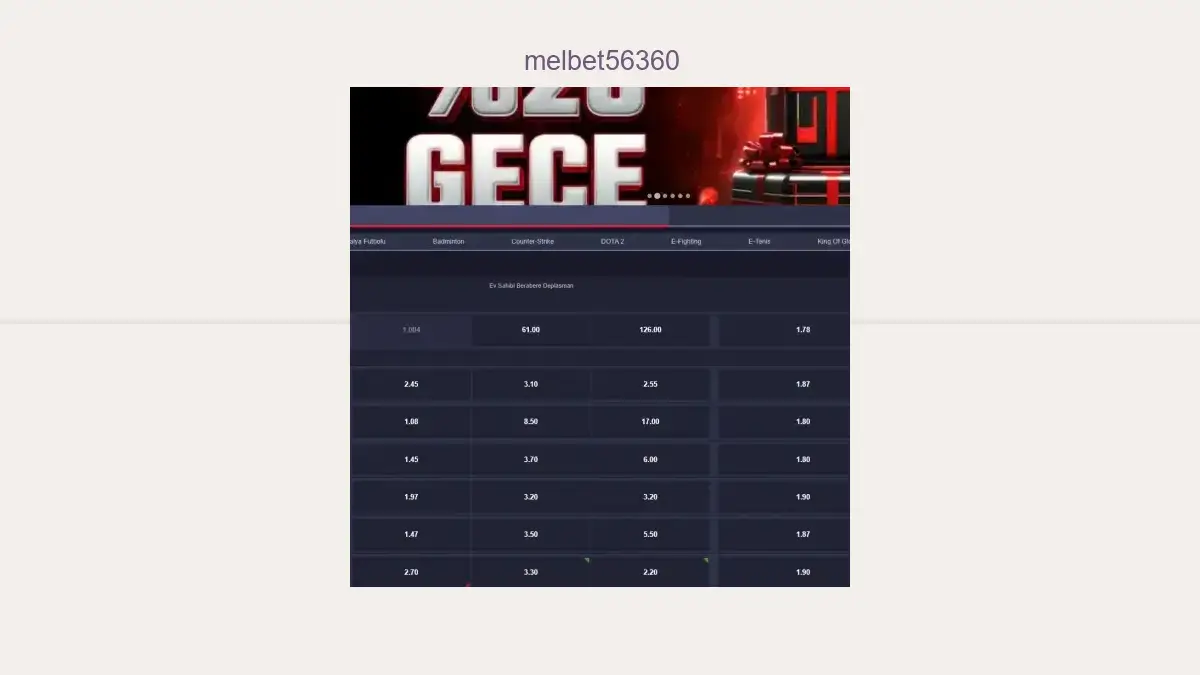Melbet56360 bahis; Türkiye'de yasal olarak faaliyet göstermeyen bir platform olduğundan giriş adresi aralıklarla engellenmektedir. Melbet56360 ve benzeri sitelerde bahis yapanlar bu duruma muhtemelen uzun süredir alışmışlardır. Melbet56360 sitesinin giriş adresi, her erişim engelinden sonra yenilenerek kullanıcıların sorunsuz giriş yapması amacıyla yeni bir giriş adresinden faaliyetlerini devam ettirmektedir. Kapanma problemi bazen çok kısa sürelerde gerçekleşebilirken bazen de bir kaç günü bulmaktadır.