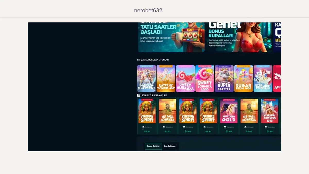 Giriş için kullandığı adres değiştirilen Nerobet632 sitesine giriş yapmak istiyorsanız aşağıdaki Nerobet632 giriş bağlantısını tıklayabilirsiniz. Nerobet632 giriş linki çalışmıyorsa Nerobet632 yine kapatılmış anlamına gelir. Yabancı bahis firmalarının kapatılan giriş adresleri küçük değişikliklerle açıldığından artık Nerobet632 adresi üzerinden hizmetine devam eden siteye sitedeki linkten giriş yapabilirsiniz. Nerobet632 giriş butonu çalışmıyorsa firmanın adresi tekrar erişime engellenmiş olabileceğinden bir süre bekledikten sonra yeniden deneyiniz.