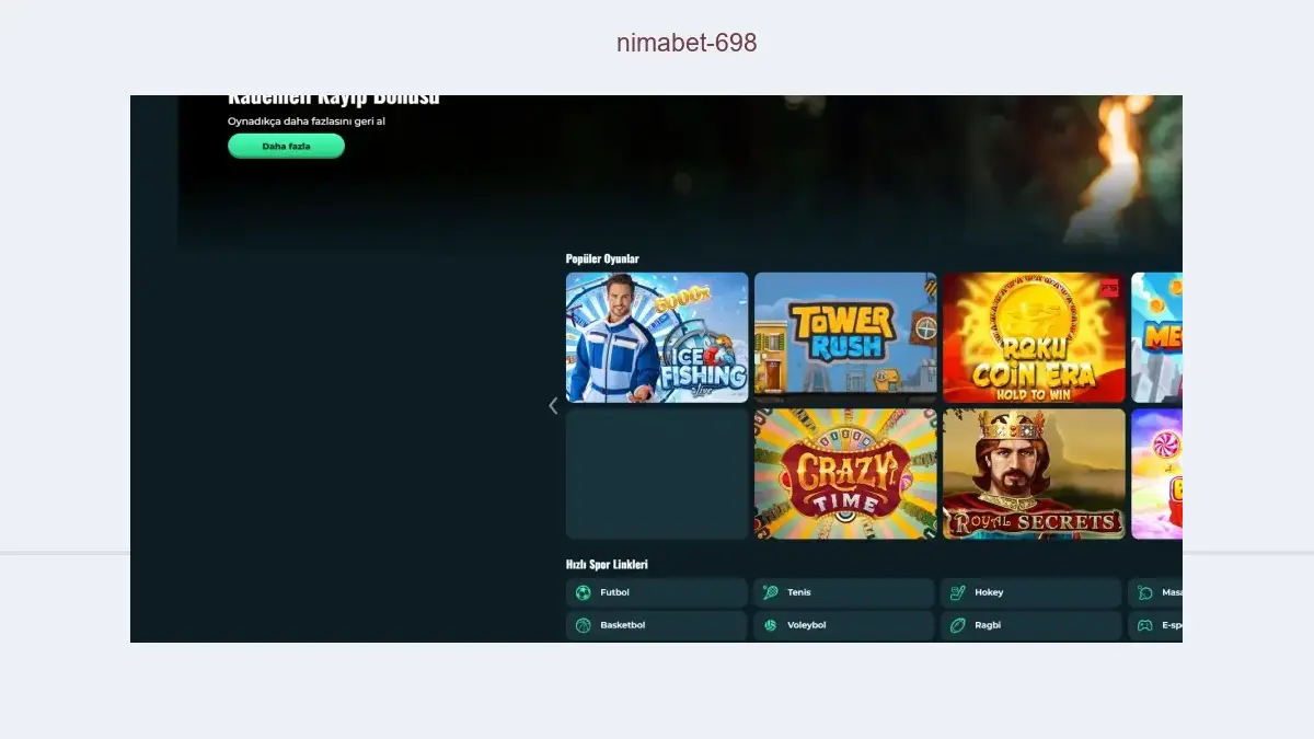 Nimabet 698 bahis giriş adresi sayfamızda ziyaretçilerimizin kullanımına açıktır. Siteye daima erişim sağlamak amacıyla web sitemizi tarayıcınızın sık kullandığınız adresler bölümüne eklemeyi unutmayın.