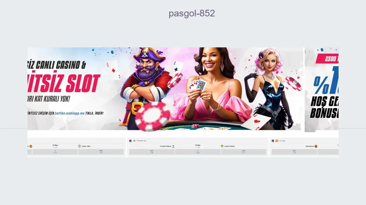 Giriş için kullandığı adres değişen Pasgol 852 bahis için Pasgol 852 giriş bağlantısını tıklayınız. Pasgol 852 linki çalışmıyorsa Pasgol 852 yine erişime kapatılmış olabileceğinden bir süre bekleyiniz. Yabancı bahis şirketlerinin engellenen domainleri değişikliğe uğrayarak hizmete sunulduğundan artık Pasgol 852 adresi üzerinden varlığını sürdüren şirkete aşağıdaki giriş bağlantısından ulaşabilirsiniz. Pasgol 852 giriş butonu yönlenmiyorsa sitenin güncel adresi yeniden kapatılmış olabileceği için bir süre bekledikten sonra yeniden deneyin.