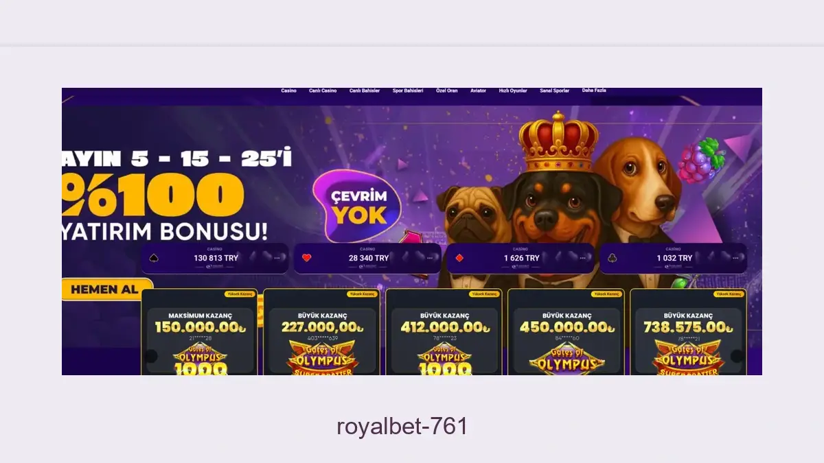 Giriş adresi değiştirilen Royalbet 761 bahise ulaşmak istiyorsanız aşağıdaki Royalbet 761 giriş bağlantısını kullanabilirsiniz. Link çalışmıyorsa Royalbet 761 bir kez daha kapatılmış olabileceğinden linki yenilememizi beklemelisiniz. İddaa haricindeki bahis firmalarının erişime kapatılan giriş adresleri güncellenerek hizmete sunulduğundan artık Royalbet 761 adresi üzerinden hizmetini sürdüren siteye alttaki bağlantıdan ulaşabilirsiniz. Royalbet 761 giriş butonu ulaşılamıyorsa firmanın domaini bir kez daha yenilenmiş olabileceğinden bir süre bekledikten sonra yeniden deneyebilirsiniz.