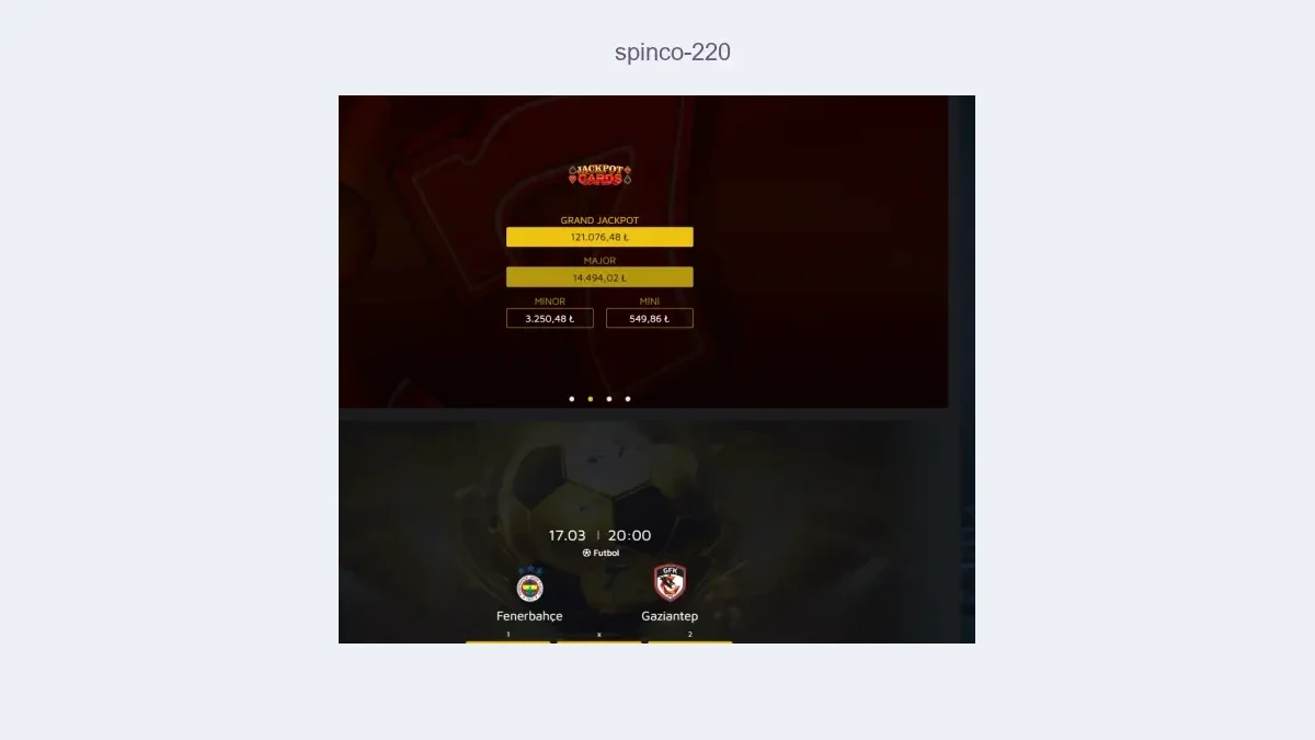Artık Spinco 220 domaininden yayın yapacak olan siteye sayfadaki Spinco 220 giriş linkinden erişim sağlayabilir ve Spinco 220 kullanıcıysanız üye girişi yapıp siteyi bahis için kullanmaya devam edebilirsiniz. Spinco 220 giriş bağlantısı aktif değilse biraz bekleyip tekrar tıklayınız. Spinco 220 giriş bağlantısını kullanıp firmanın güncel adresine ulaşabilirsiniz. Spinco 220 giriş linkinden giriş yapılamıyorsa yorum yazarak giriş sorununu bize yazınız.