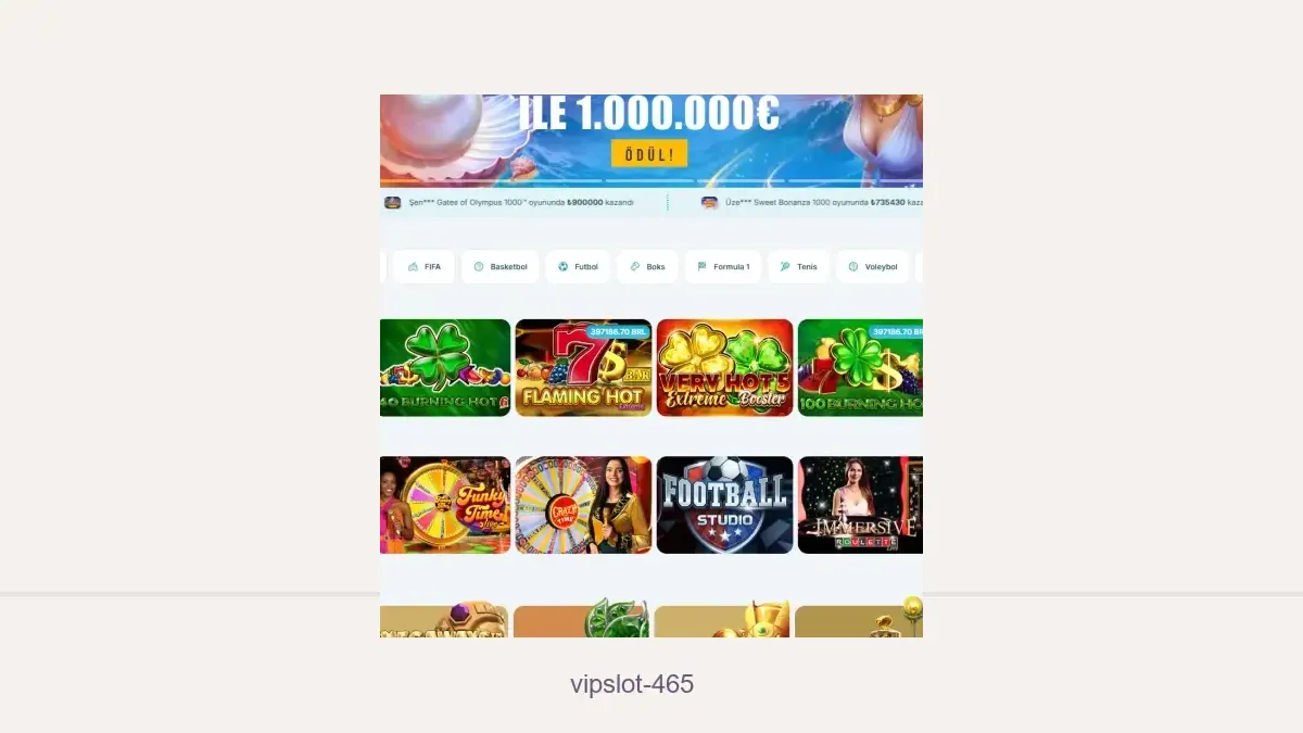 Vipslot 465 bahiste üyeliğiniz varsa sitemizdeki Vipslot 465 yeni giriş adresinden platformun faaliyetteki adresine erişim sağlayıp bahis oynayabilirsiniz.
